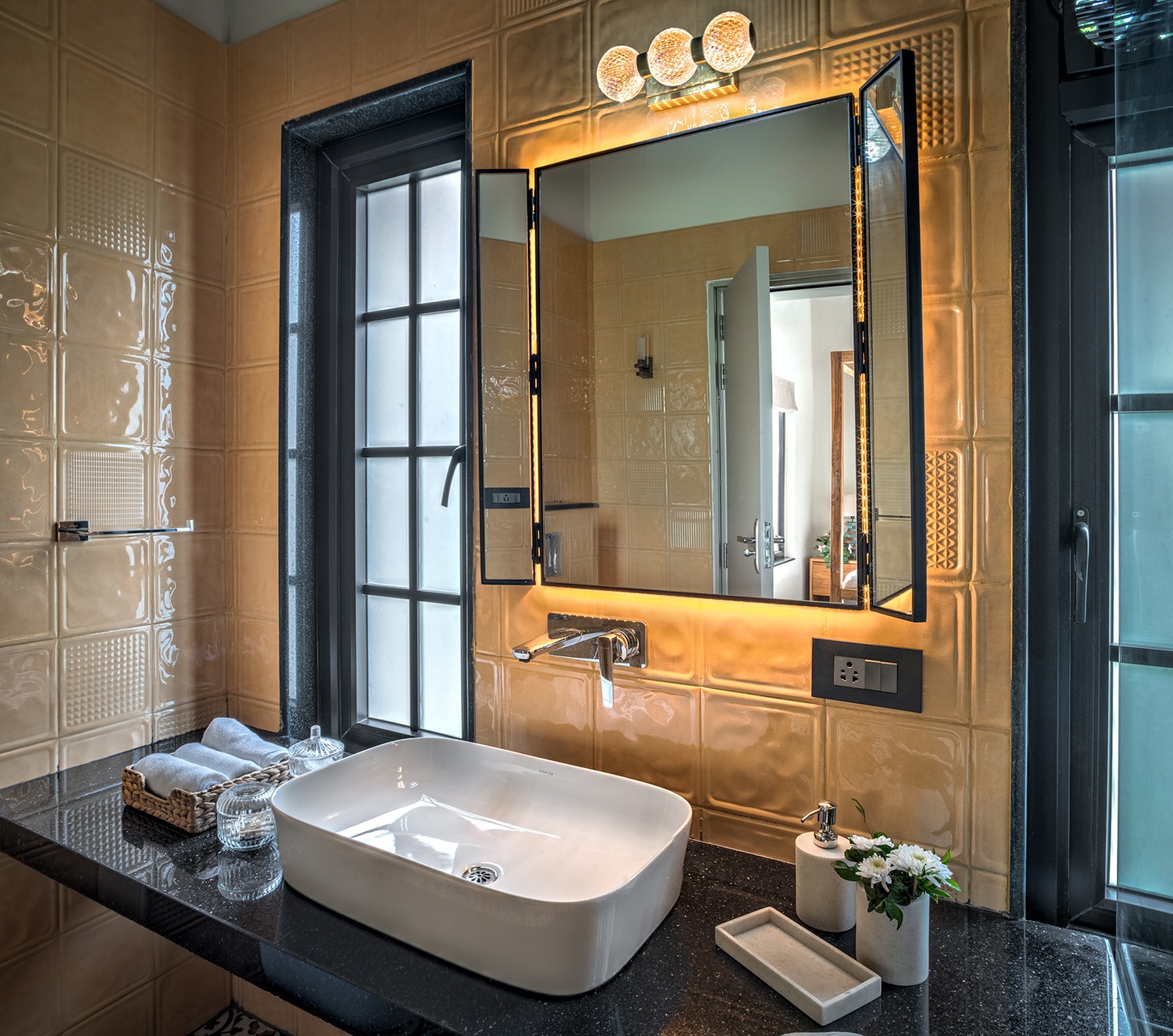The villa consists of two stories, dividing the house into unique spaces. The ground floor, first floor, and second floor with a terrace al fresco dining area.
