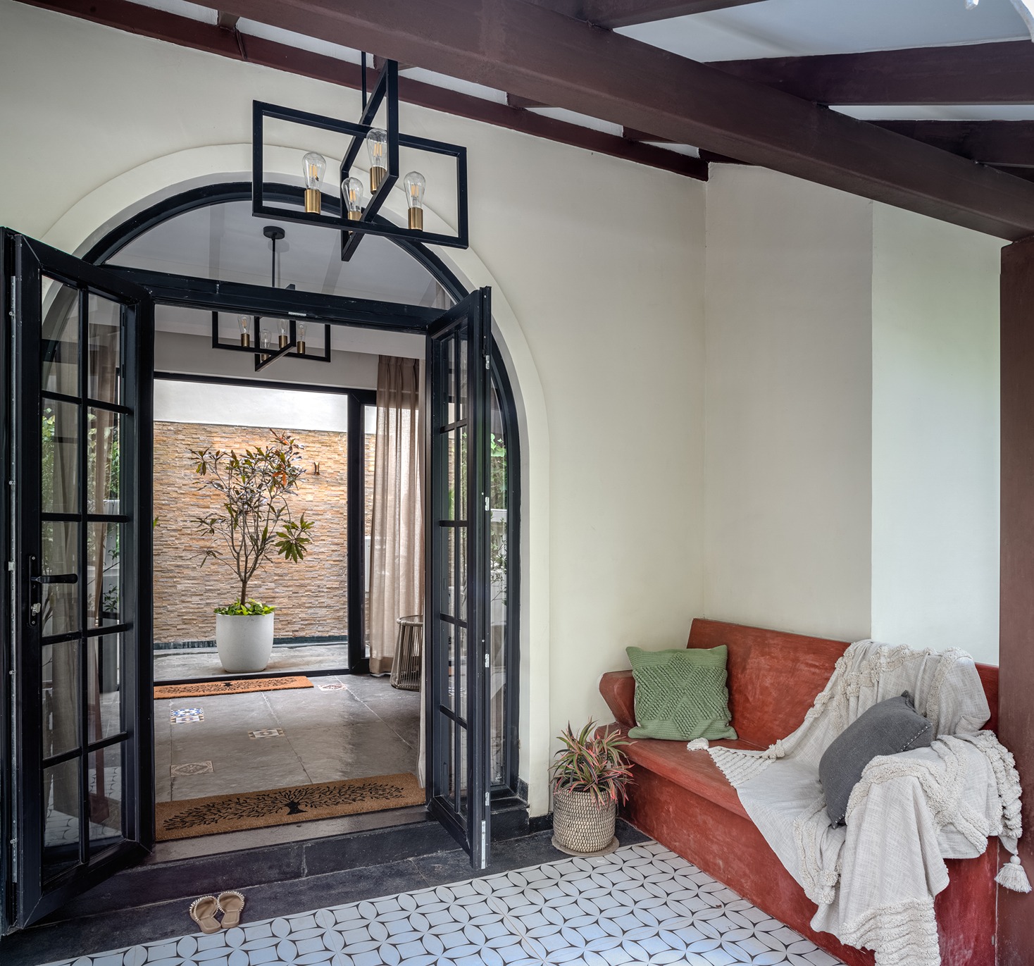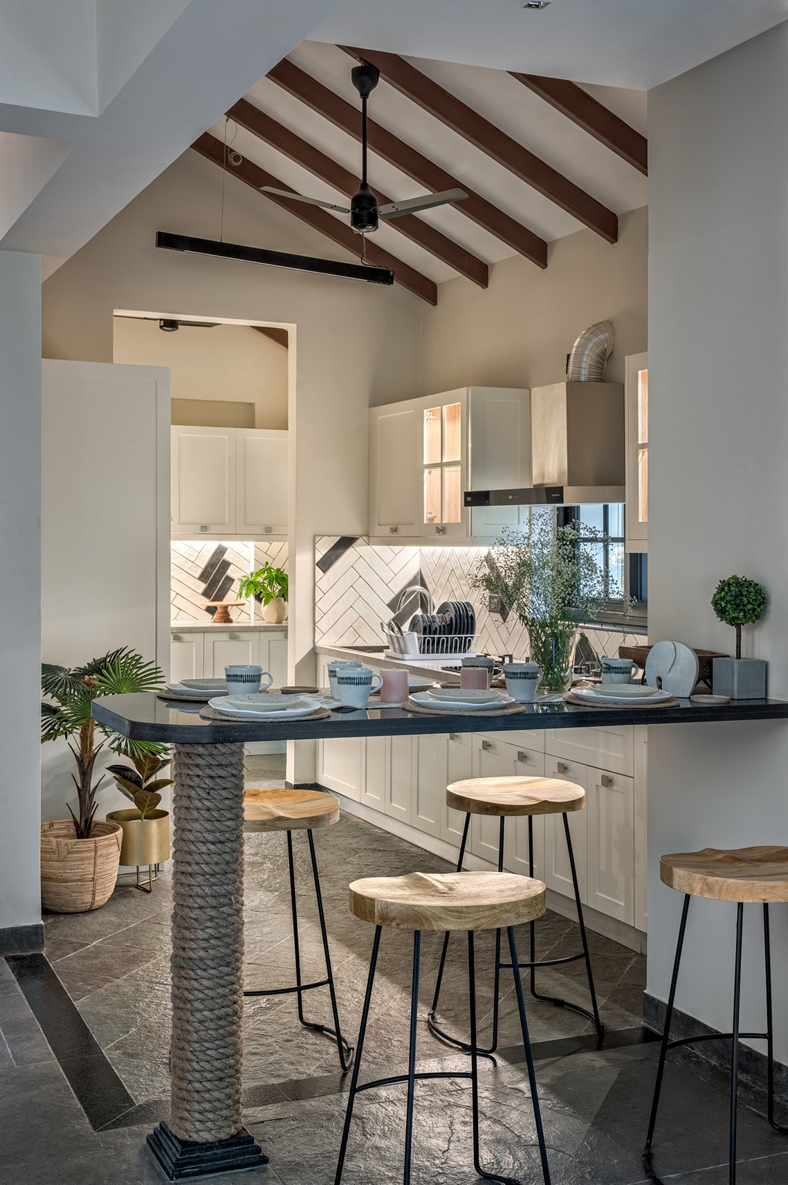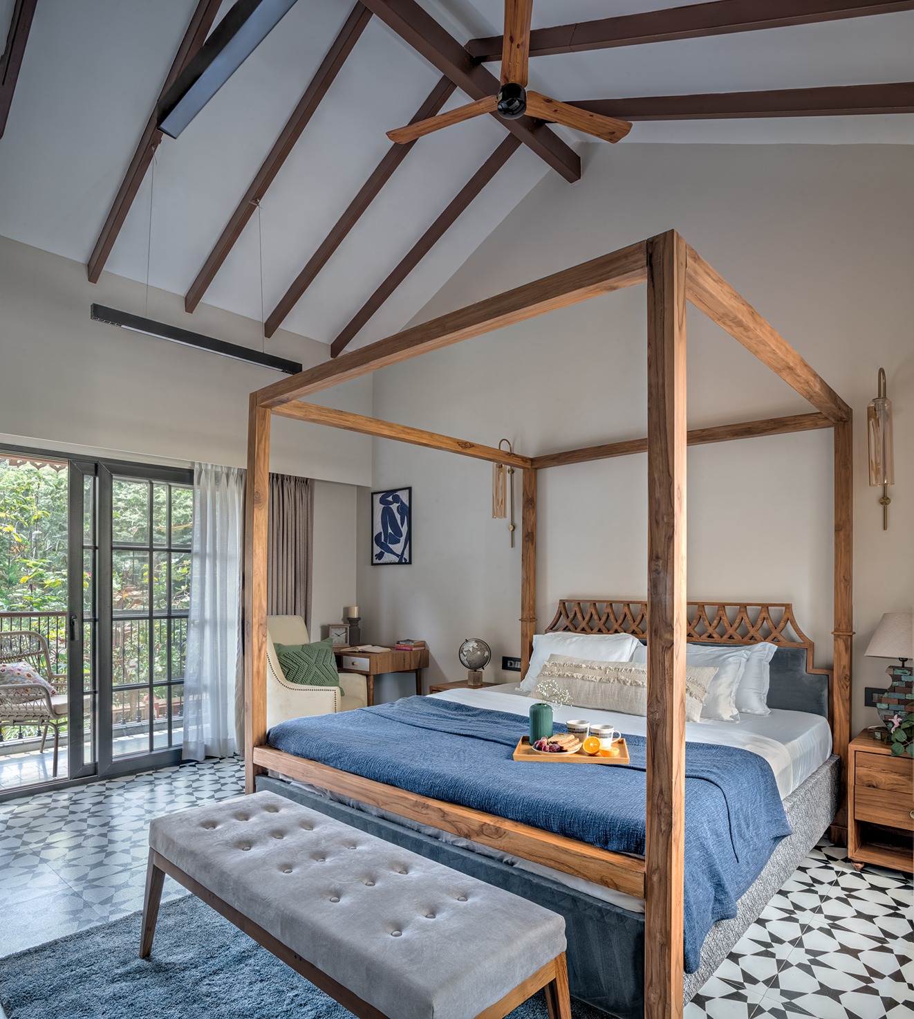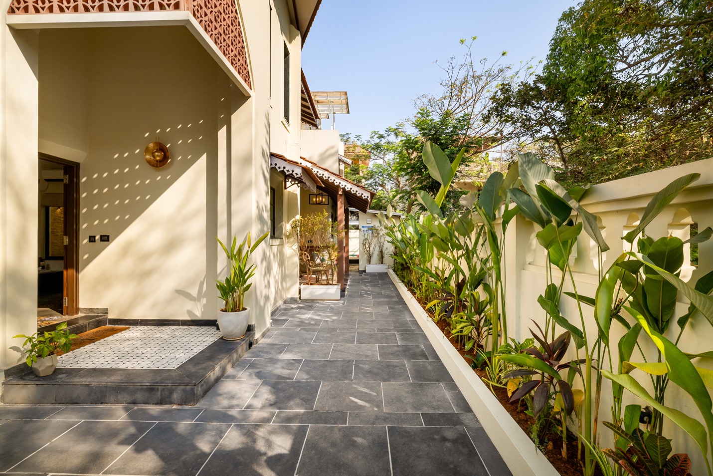 Climbing the stairs takes you to the al fresco terrace dining area, where you can enjoy Anjuna’s lush green landscapes.