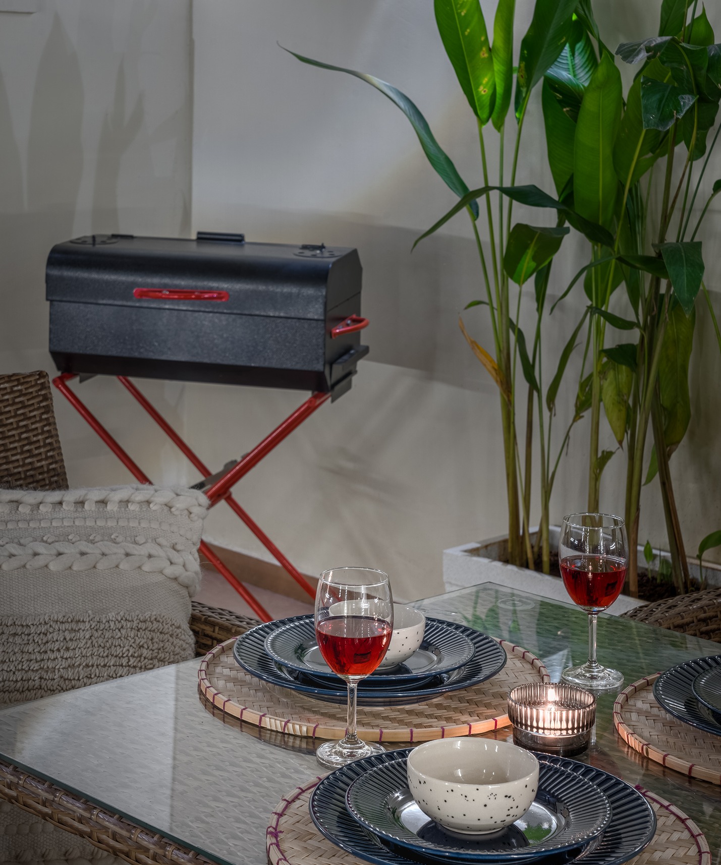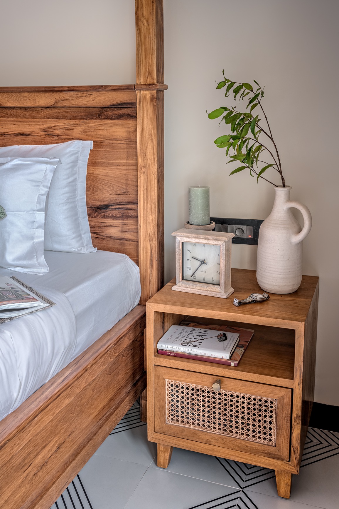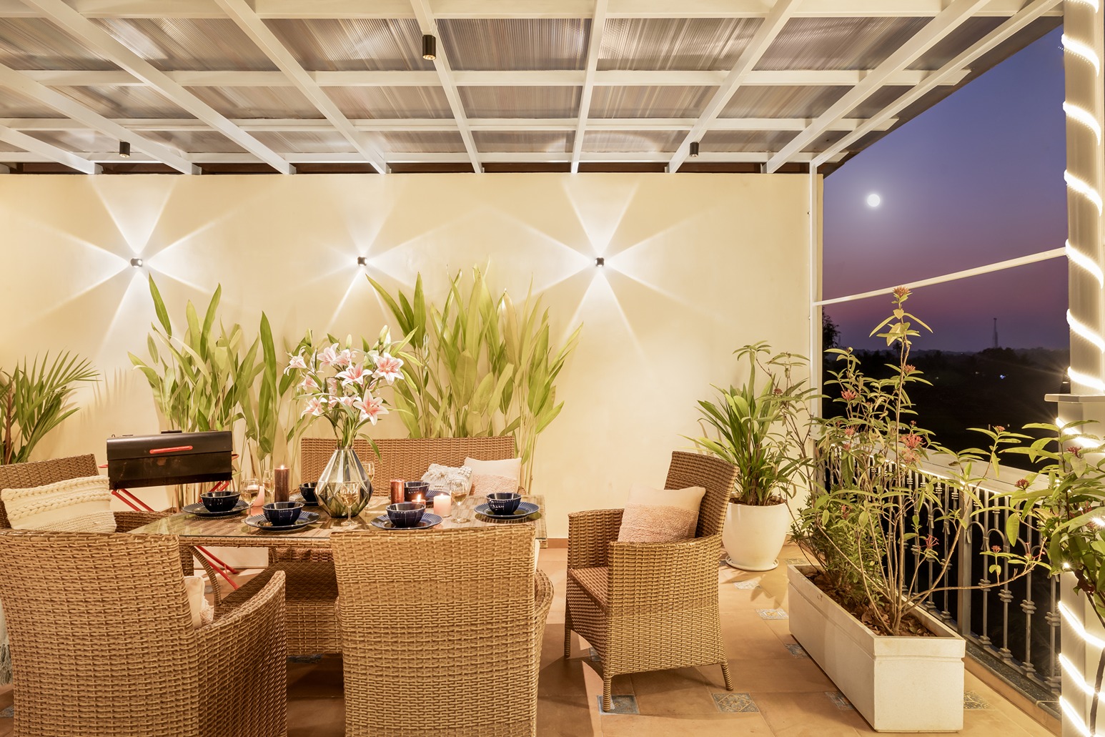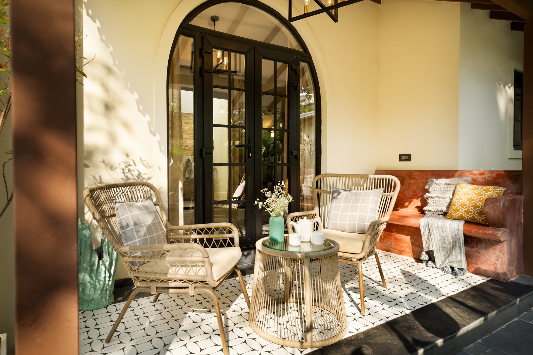 Climbing the stairs takes you to the al fresco terrace dining area, where you can enjoy Anjuna’s lush green landscapes.