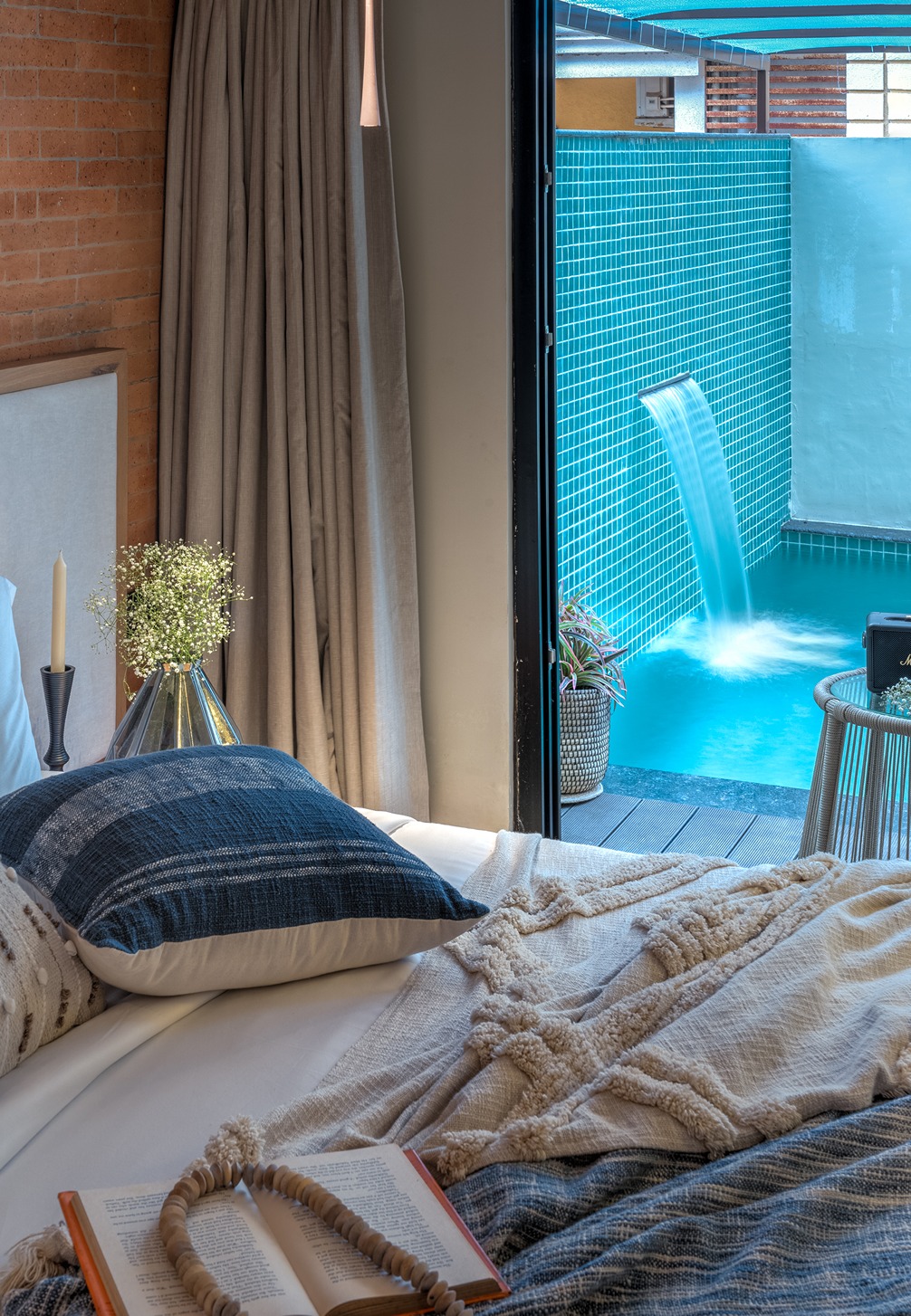 Your private pool has two access points: from the master bedroom and a common entrance.