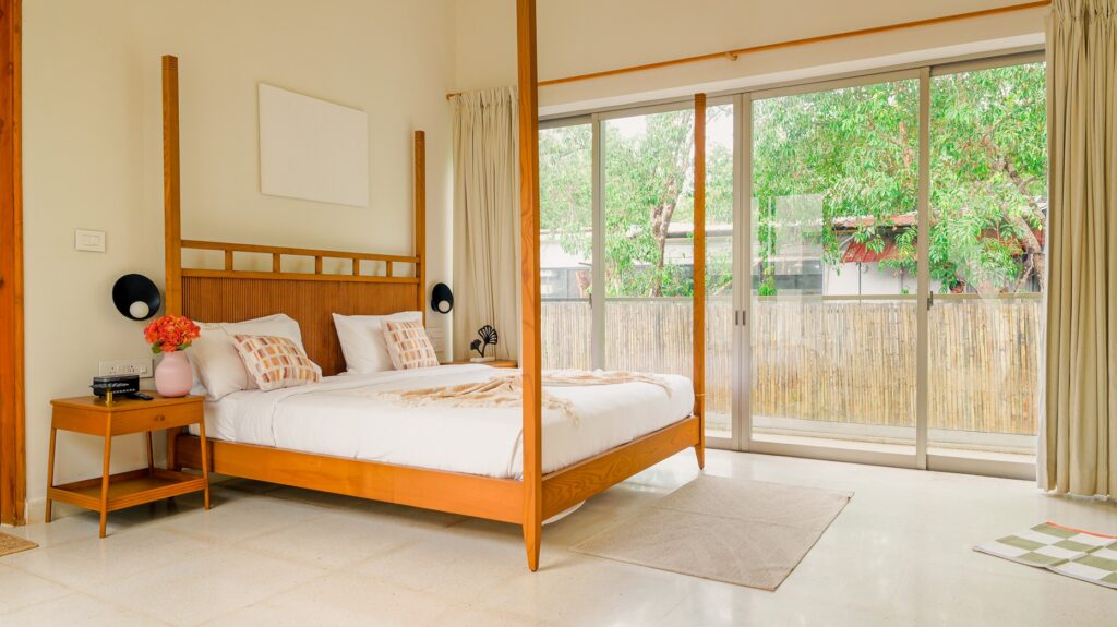 Tucked away in Vagator is a lavish 3-bedroom villa with a private swimming pool. Upon arrival, you’ll be embraced by a sense of peace and sophistication. The villa greets you with its chic faqade—an exquisite circular mirror, antique pots, and sleek design elements, complemented by graceful staircases leading to…